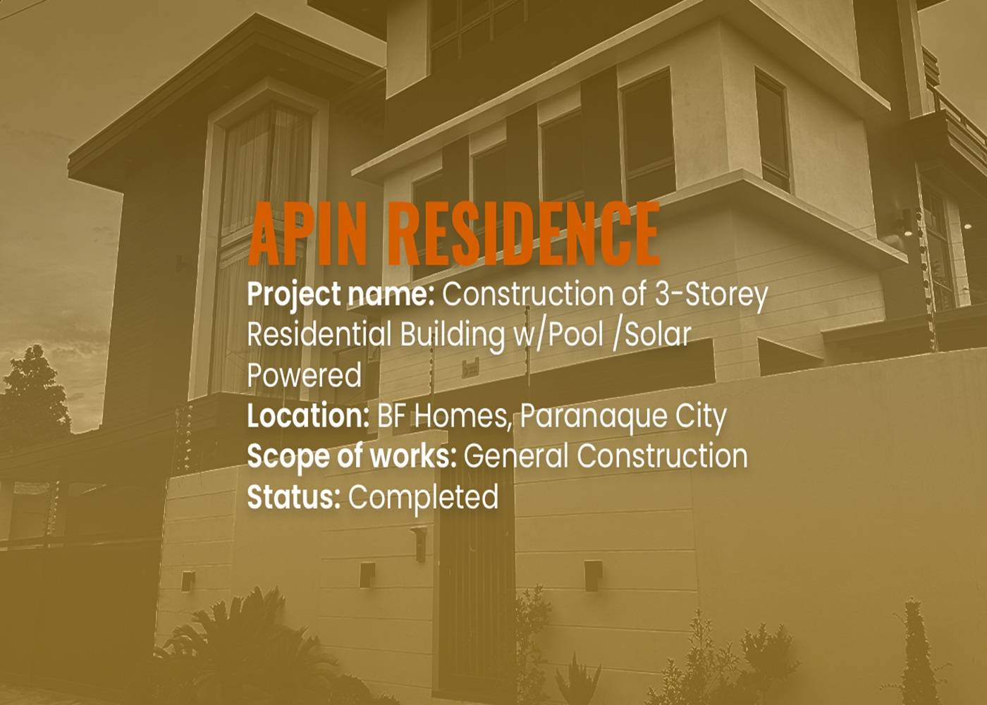 Project name: Construction of 3-Storey Residential w/Pool /Solar Powered